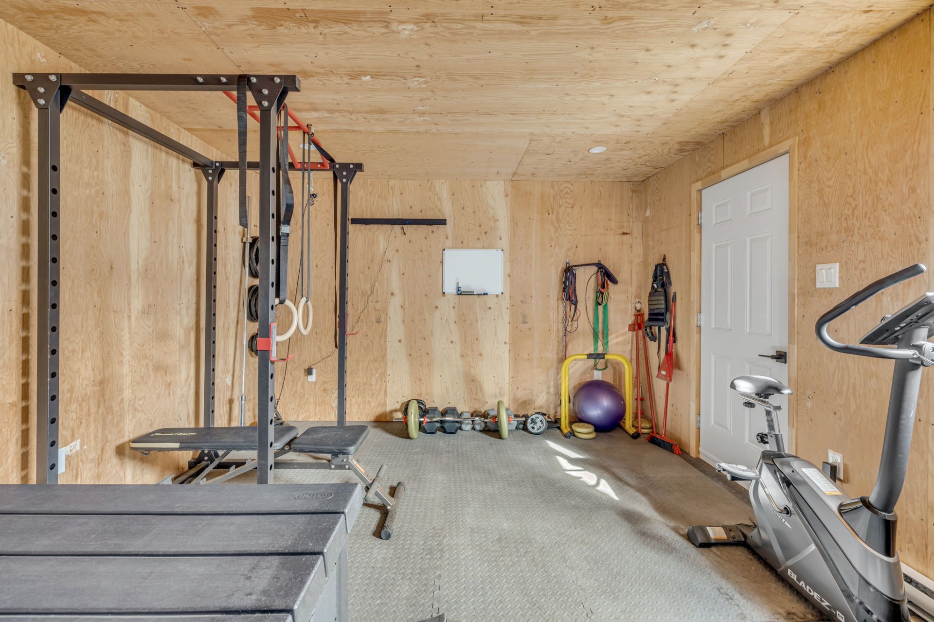 Luminaires, toiles et rideaux, thermopompe murale, tablettes de la cuisine et de la salle de bains.Exclusions
